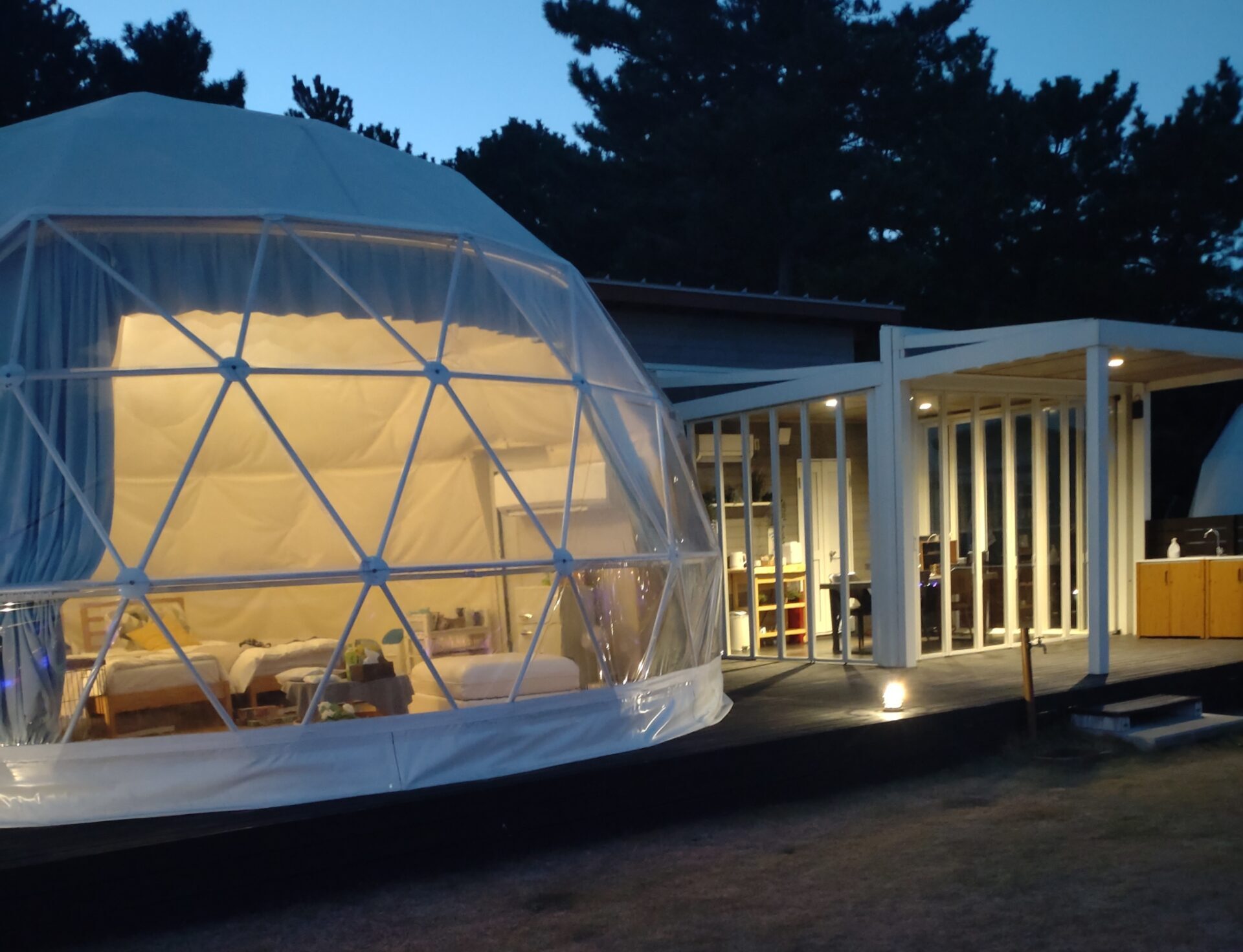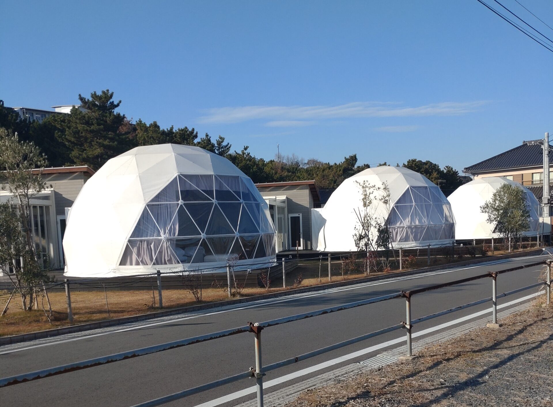 全10棟のドーム型テントを配した「グランマーレ茨城大洗」。