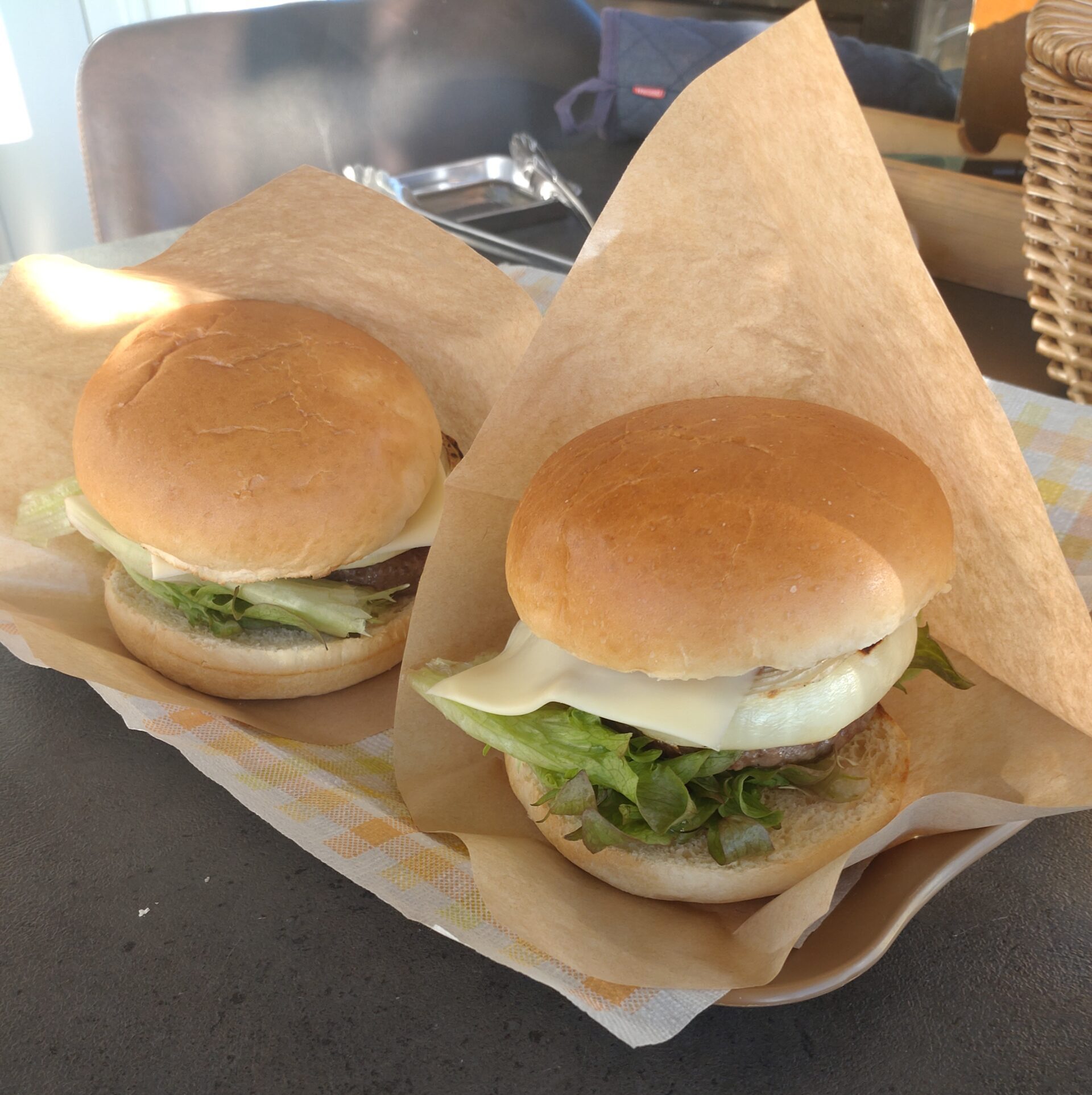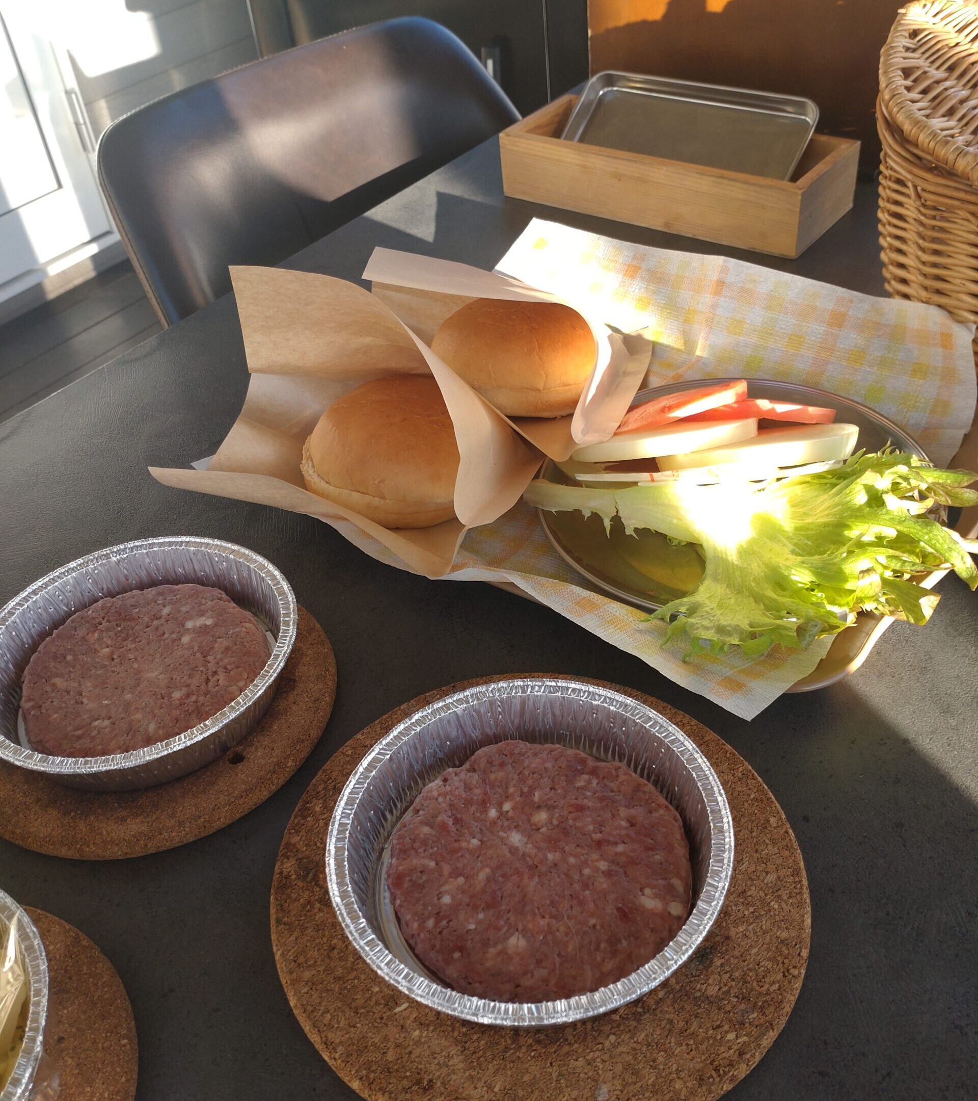 朝食は具材をお好みで挟んで作る手作りハンバーガーです。